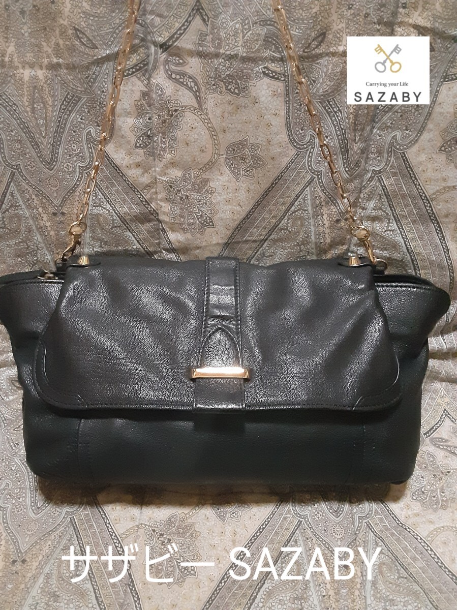 - サザビー SAZABY 黒本革/ハンドバッグ/肩掛けショルダーバッグ