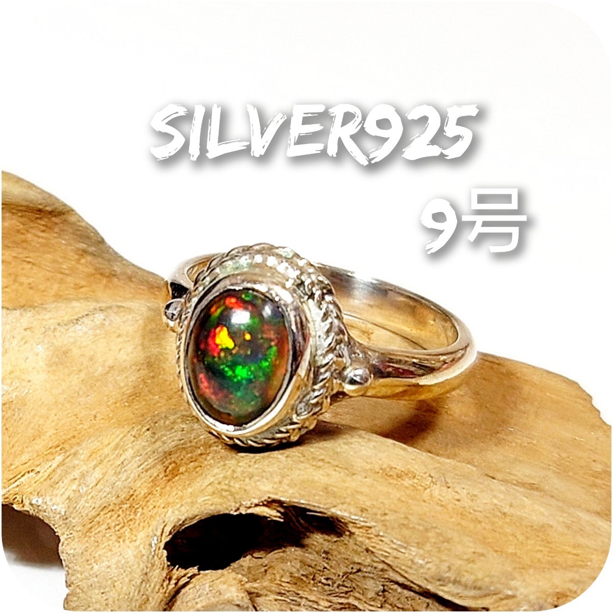 > 6300 SILVER925 希少 アンモライトオパールリング9号 シルバー925 天然石 シンプル ヴィンテージ ハンドメイド レアストーン オススメ☆