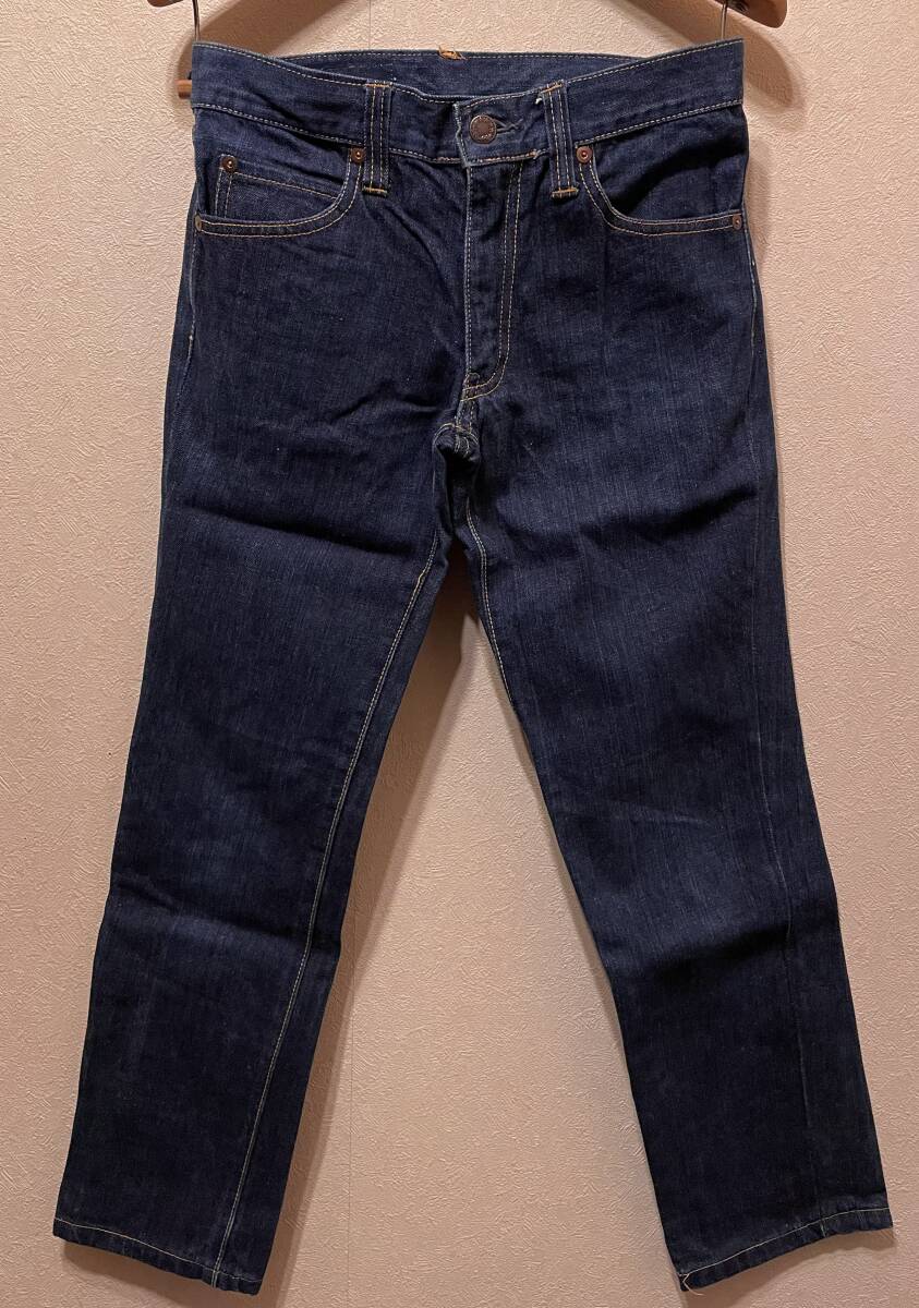 - 70sビンテージ濃紺インディゴ縦落ちデニムW28L27ローライズ テーパード ストレート スリム シルエットLevi's505タイプ70年代1970sジーンズ
