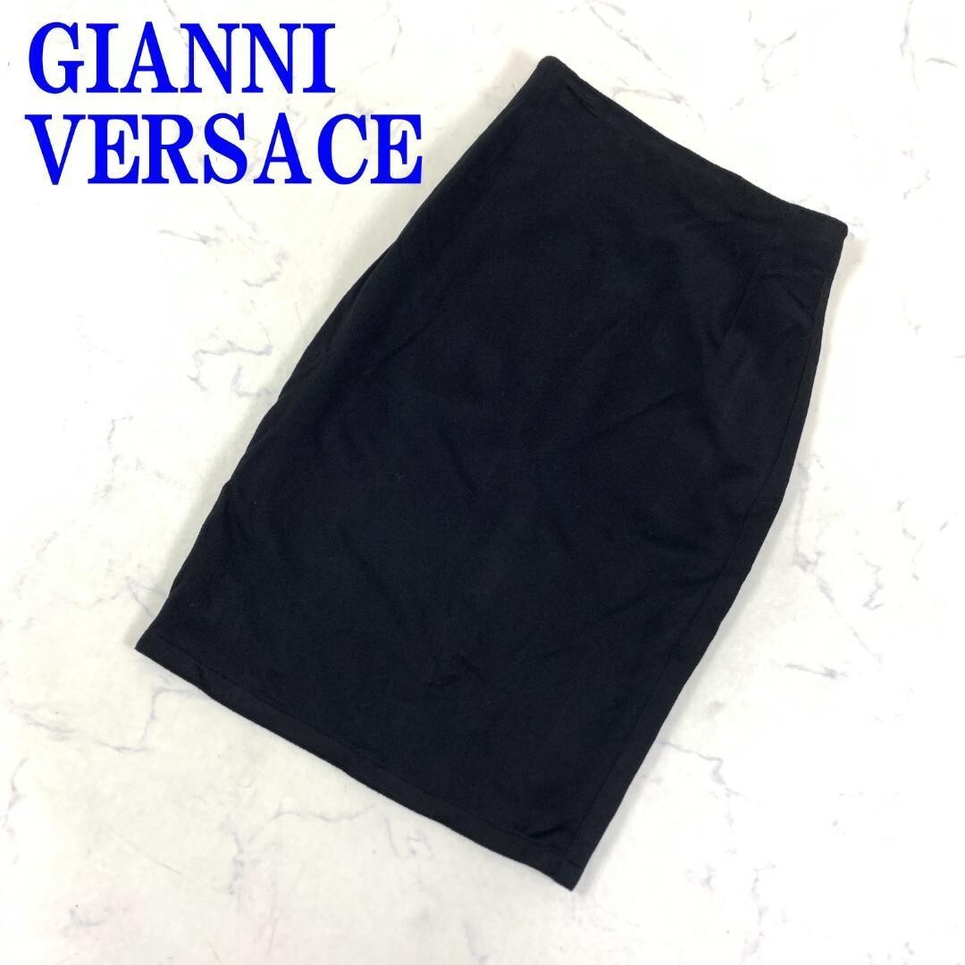 - ジャンニヴェルサーチ ロングスカート タイトGIANNI VERSACE 裏地有 ブラック ウール 黒 38 C1942