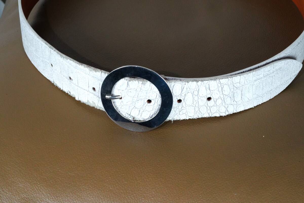 - GAETANO ガエタノ 丸バックル ベルト オフホワイト レザー 本革