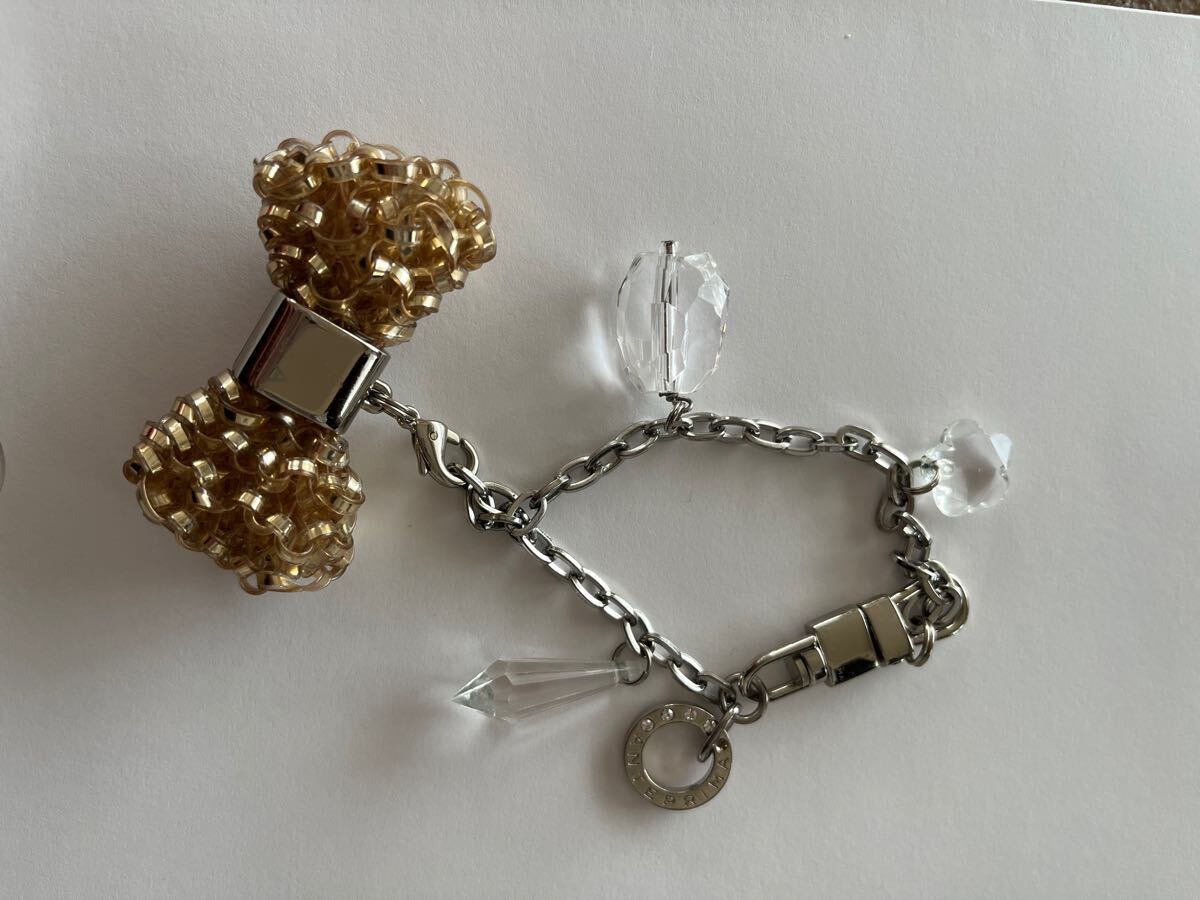 > お値下げ 送料無料 used 使用感有り アンテプリマANTEPRIMA ワイヤーリボン チャーム ラインストーン ゴールドカラー シルバーカラー