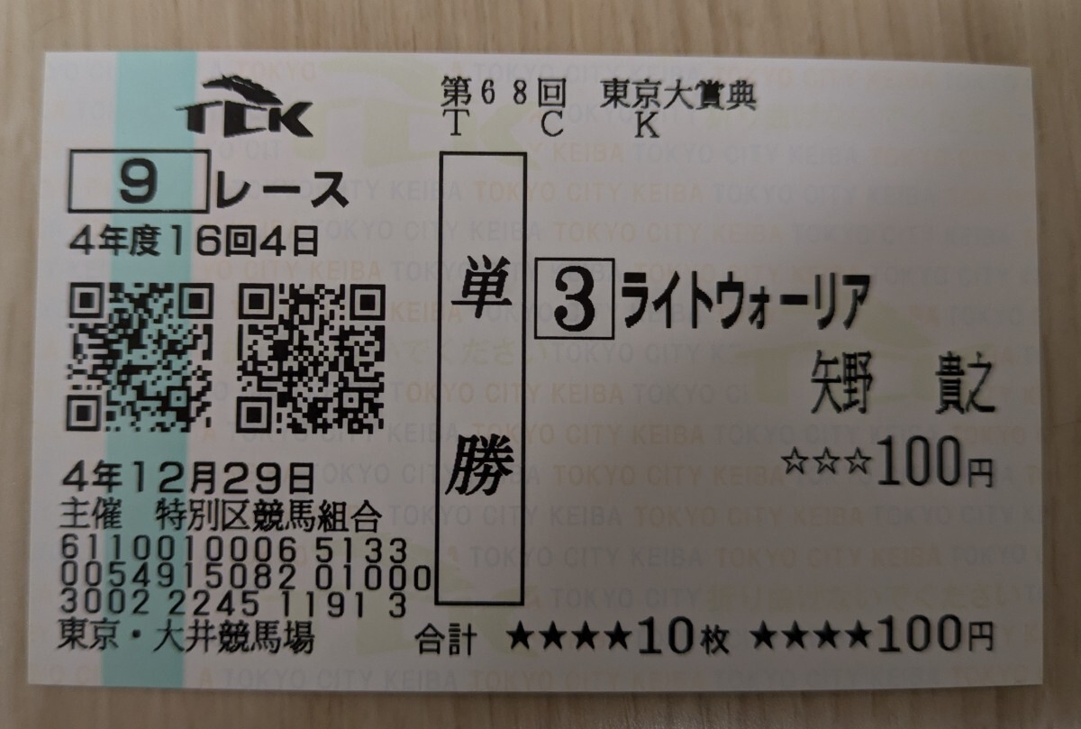 - 即決!現地購入 第68回東京大賞典 ライトウォーリア 単勝馬券
