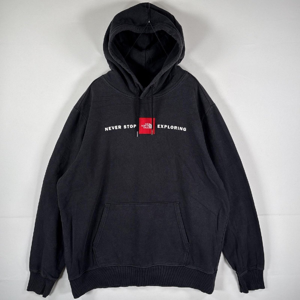 - 古着 ザ・ノースフェイス THE NORTH FACE パーカー フーディー マフポケット ワンポイント刺繍ロゴ XL ブラック メンズ