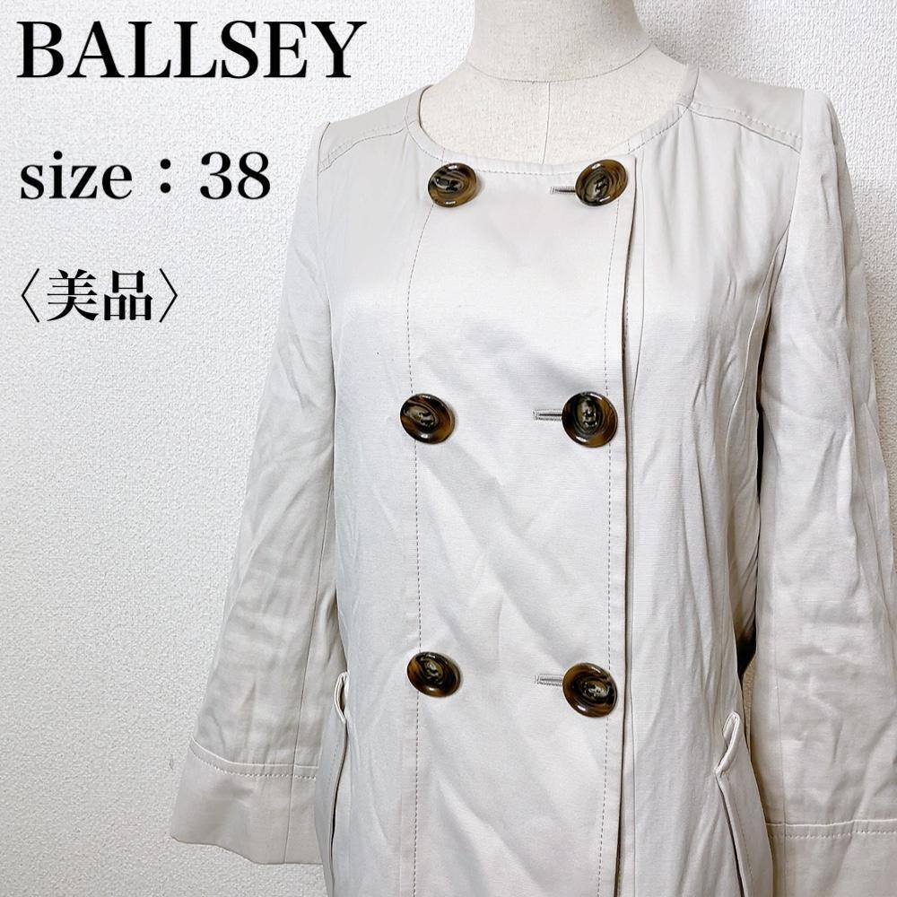 - 【美品】BALLSEY ボールジー カジュアル エレガント 軽量 ダブルボタン ノーカラーコート 羽織り ライトアウター トゥモローランド ア05