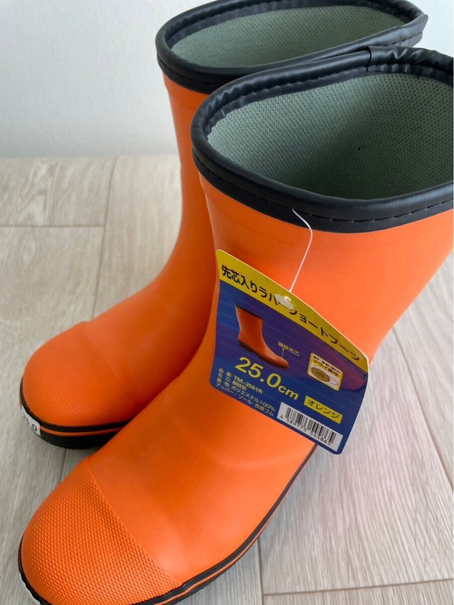 - ラストワン【新品タグ付き未使用】安全靴 オレンジ 25.0cm ラバーショートブーツ