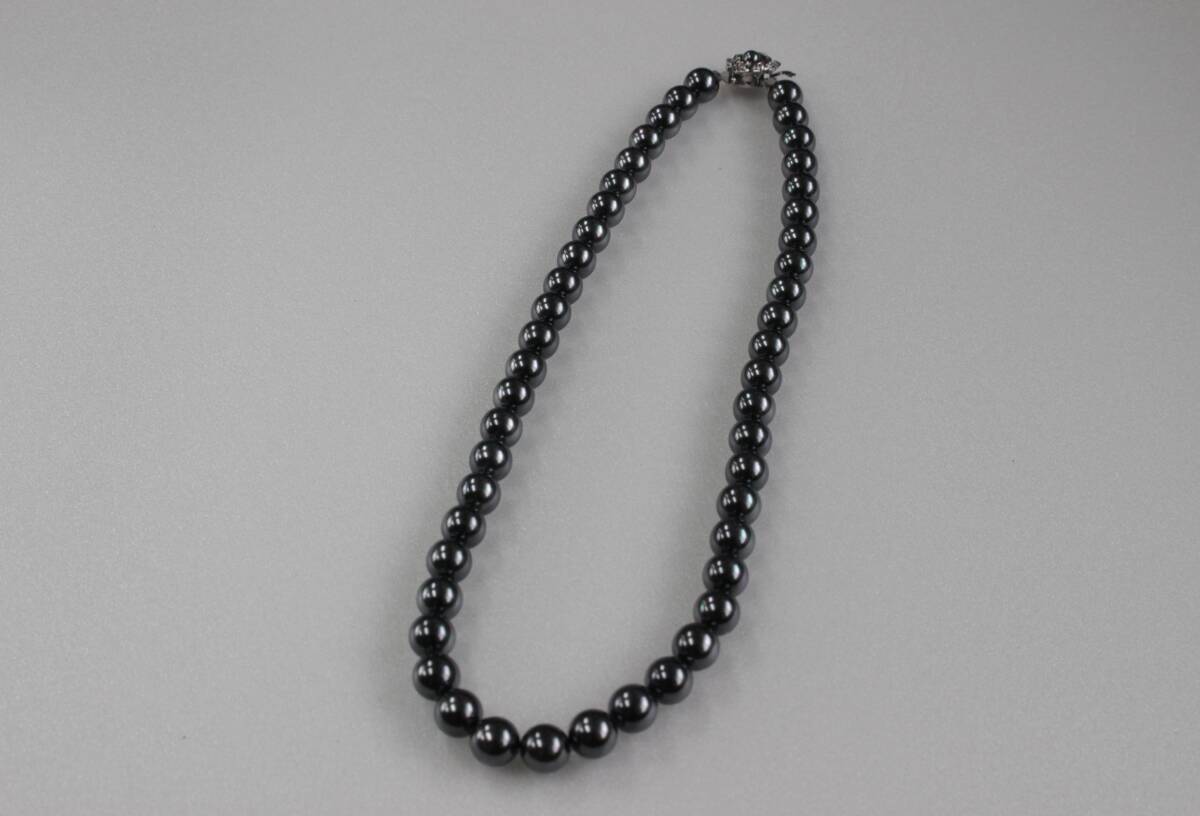 - 定形外郵便送料込み:貝パールネックレス:ブラック系:8㍉:約50㎝まで長さのオーダー可