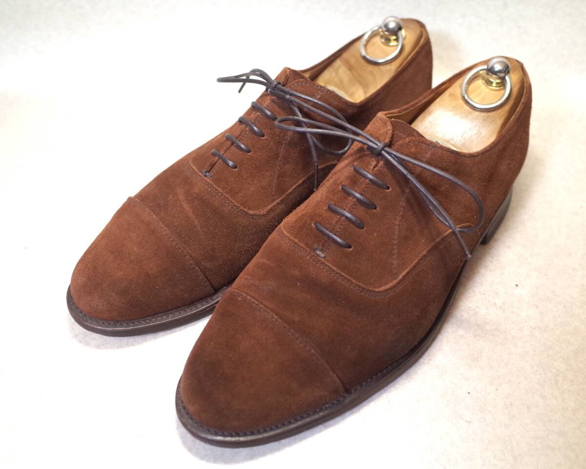 スエードレザーアッパー 内羽根5アイレット キャップトゥ/ストレートチップ。