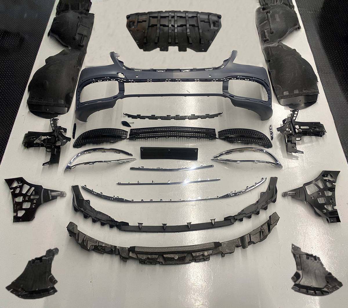 | Mercedes-Benz W222 S-Class | | | ・W222後期MAYBACH-verに変更するフロントセットです。 ・車輛個体差により加工調整が必要です。 ・未塗装です。 ・グリルは別売りになります。 ※前期に取り付ける場合は、後期ヘッドライトに交換が必要です。 | | | ・フロントバンパー ・その他部品一式 ※画像に写っているものが全てです。 MB01003001-01 | | | サイズ区分: