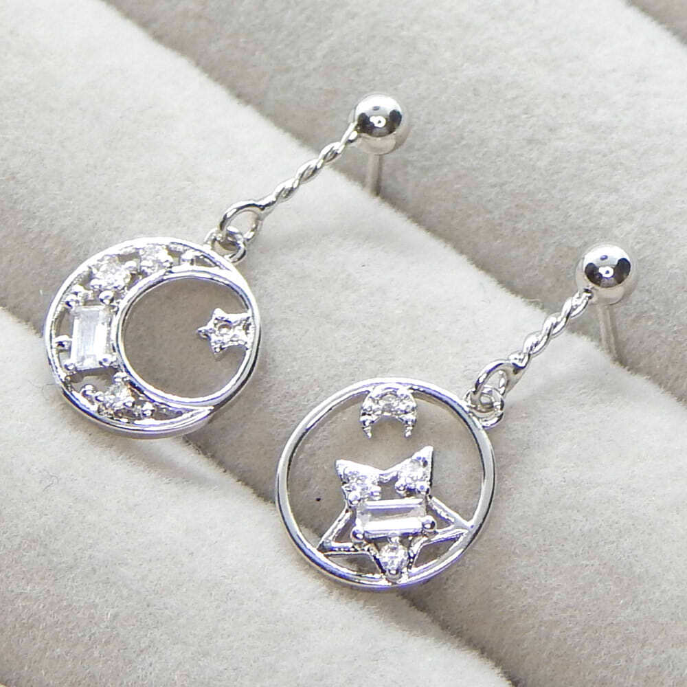 - 残り1点★極上の逸品 希少 極美 ジルコニア 月と星 CZダイヤモンドピアス プラチナ仕上 シルバー925 レディース 絶品 限定 イヤリング化可