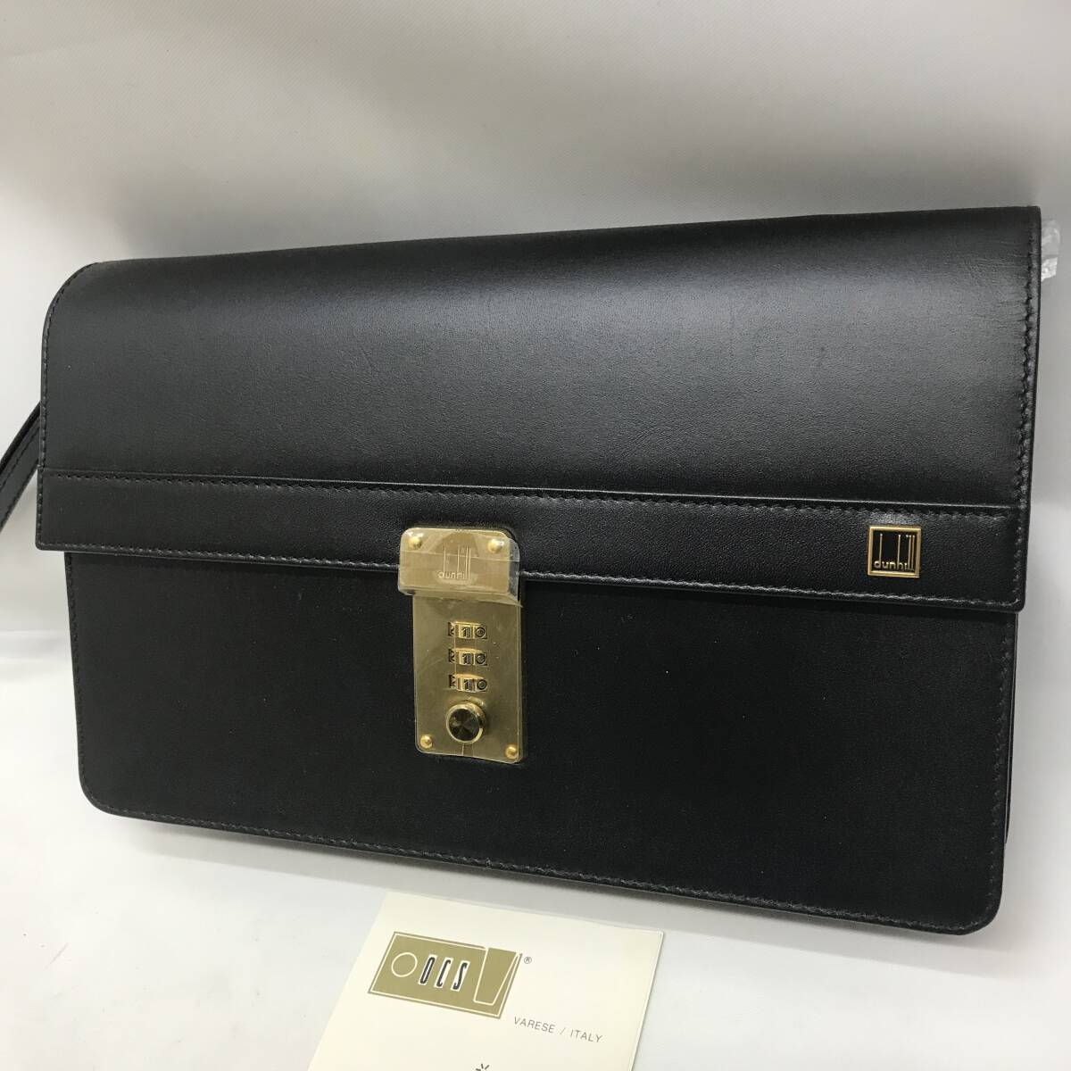 - 【未使用】ダンヒル dunhill オックスフォード セカンドバッグ ダイヤル 鍵付き ハンドストラップ付き ブラック レザー クラッチバッグ