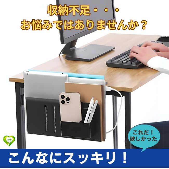 - 【こんなにスッキリ!】デスクサイドホルダー 2色展開 デスクサイドポケット クランプ式 拡張 吊り下げ収納 後付け 快適 便利 頑丈