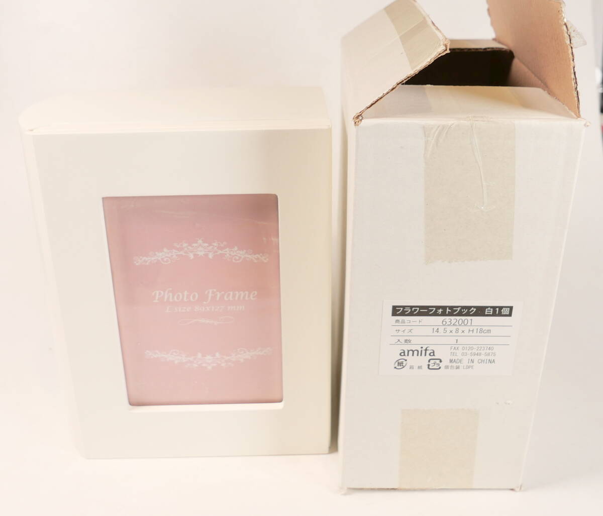 - 未開封品★amifa アミファ プリザーブドフラワー アレンジメント フラワーフォトブック 白 632001 14.5×8×18cm ③