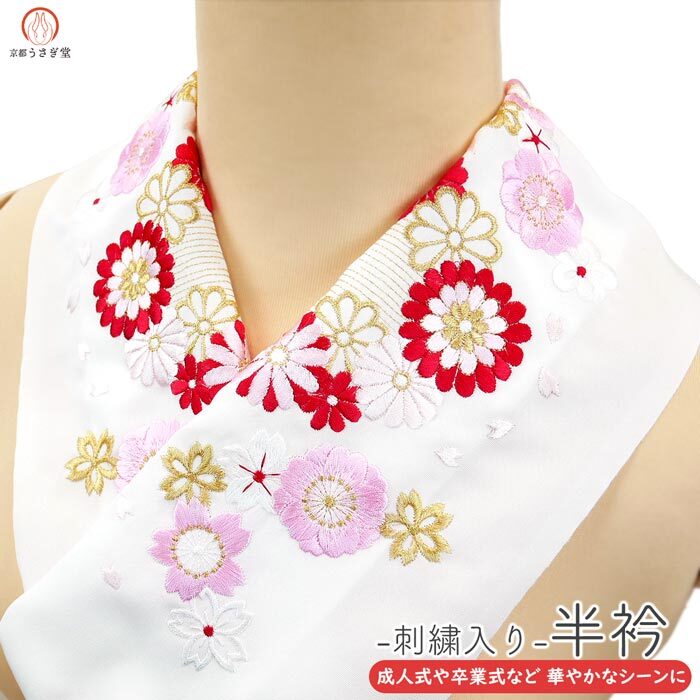 - 刺繍半衿 半襟 振袖 成人式 he-048 白 ホワイト 刺繍 訪問着 結婚式 卒業式 袴 和装 礼装