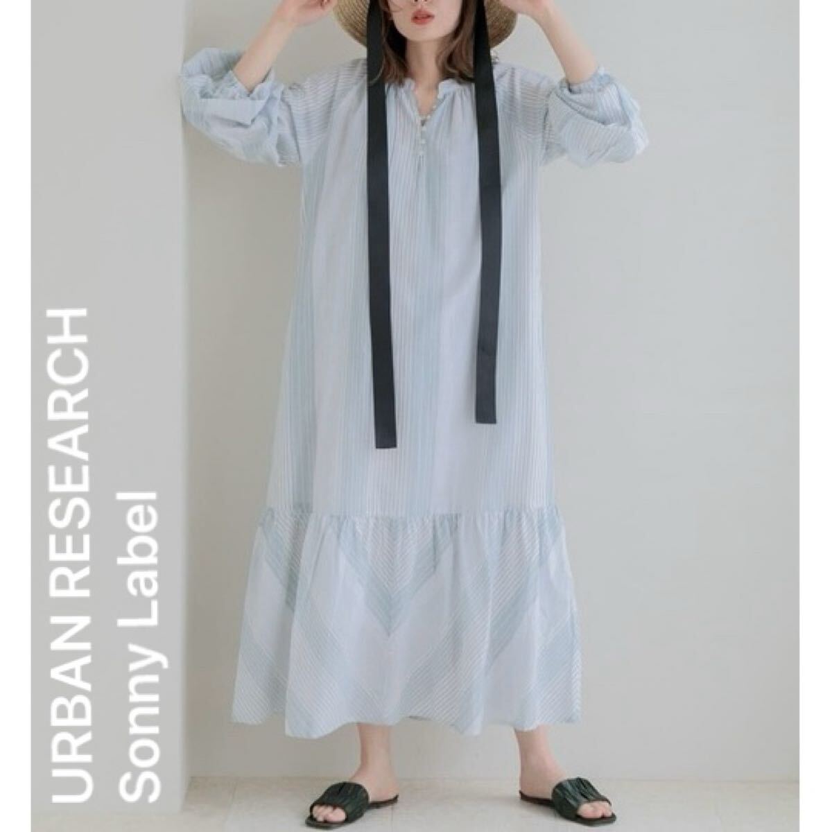 > アーバンリサーチ エアリーコットンストライプワンピース マキシドレス シャツ 長袖 コットン ロングスカート サニーレーベル 美品