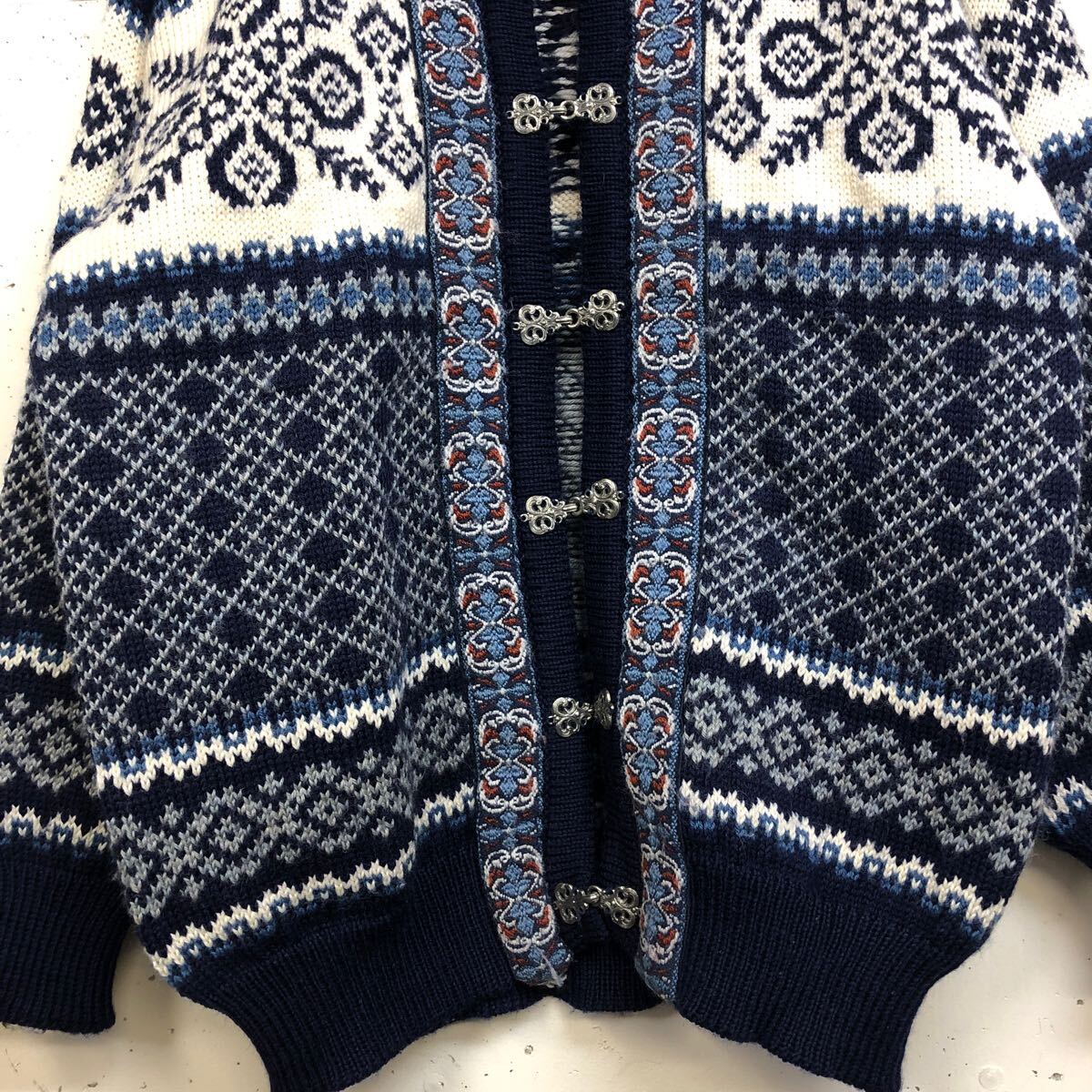 - DALE OF NORWAY フック カーディガン ウール ノルウェー製 ノルディック サイズM ブルー 青 ニット