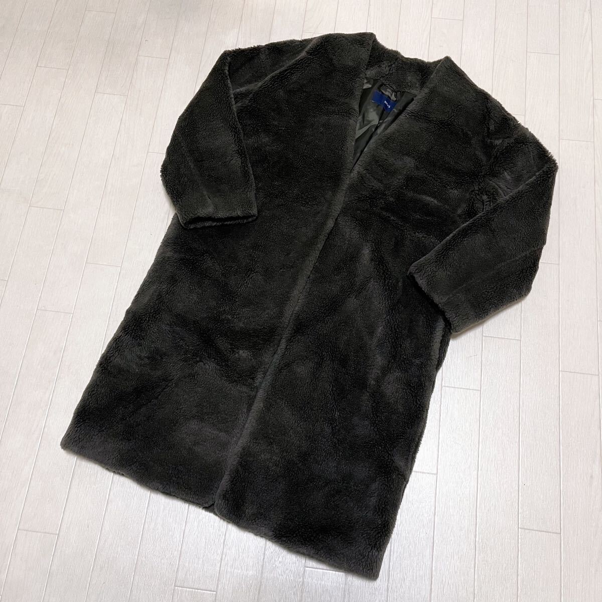 - 和613★ SHIPS シップス ノーカラーコート セミロングコート ボアフリース カーキ レディース