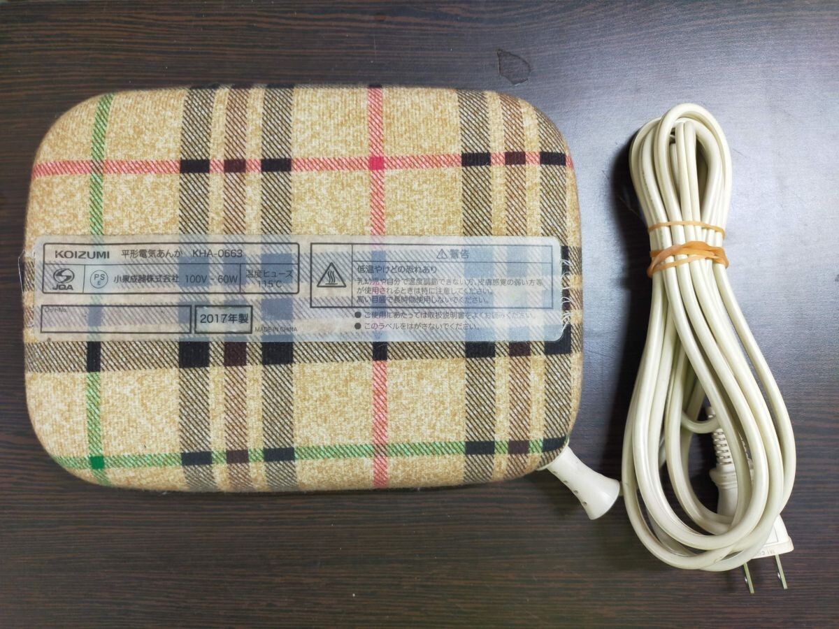 - E17-20250123-032 【動作可能】 KOIZUMI 平形電気あんか KHA-0663 4981747060433 2017年製 良好