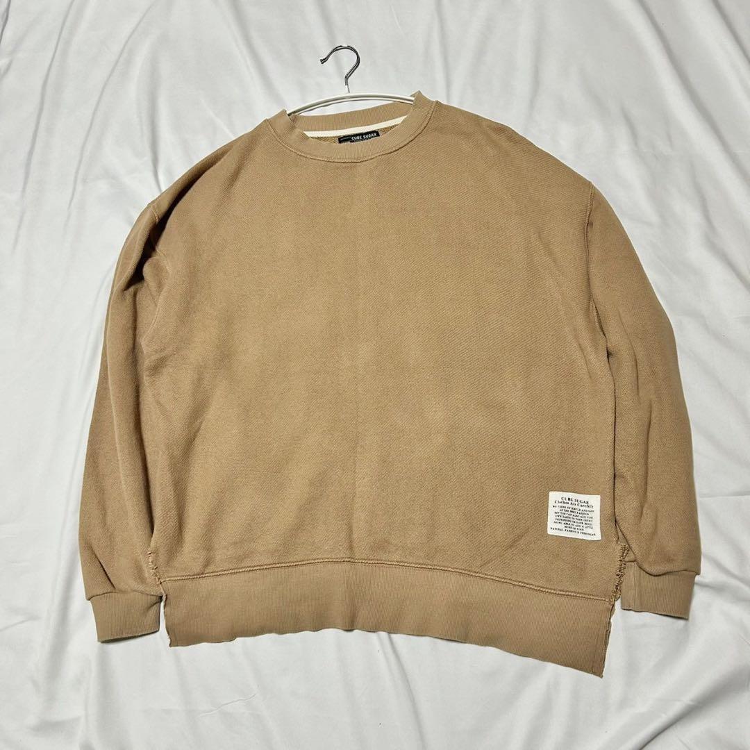 - 【CUBE SUGAR】スウェット トレーナー ブラウン サイドスリット (M)