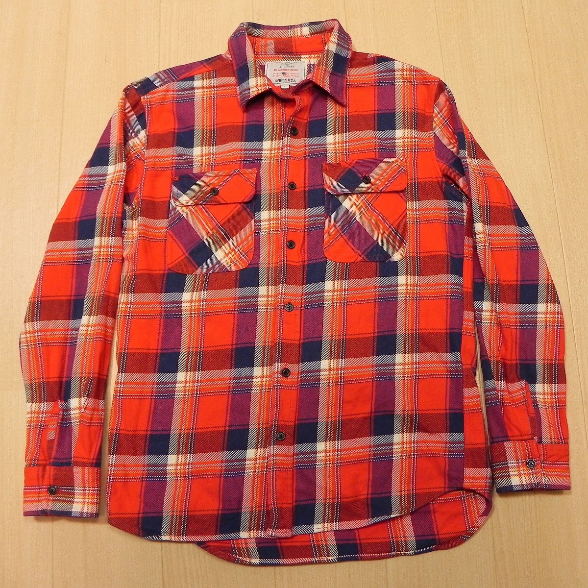 > 良品[AVIREX/アヴィレックス]ネルシャツ メンズ L 赤系 チェック柄 フランネルシャツ ヘビーネル ★h