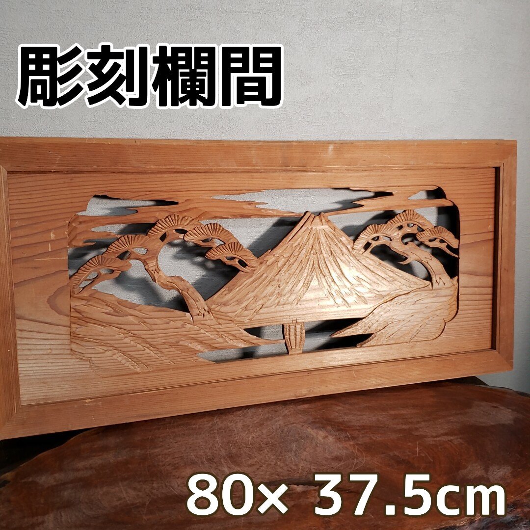 - 彫刻欄間 「1枚のみ」 富士 松 80×37.5cm 建具 伝統工芸 時代建具 古民家 アンティーク レトロ 富山 リノベ 木製 小道具 DIY【140i4616】