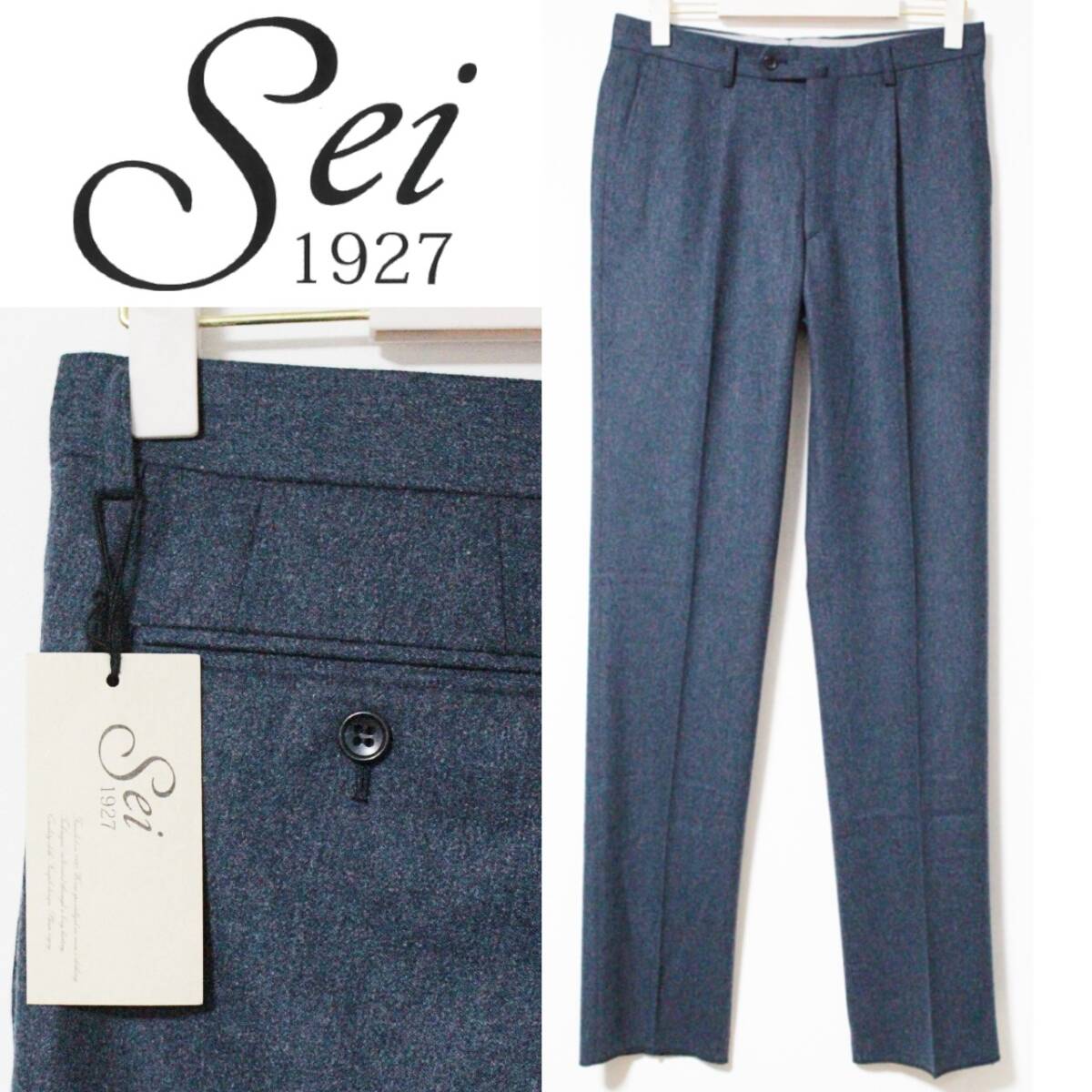 - 新品 Sei1927 定価33000円 SUPER120's 1タック フラノスラックス 82cm 紺 K4608