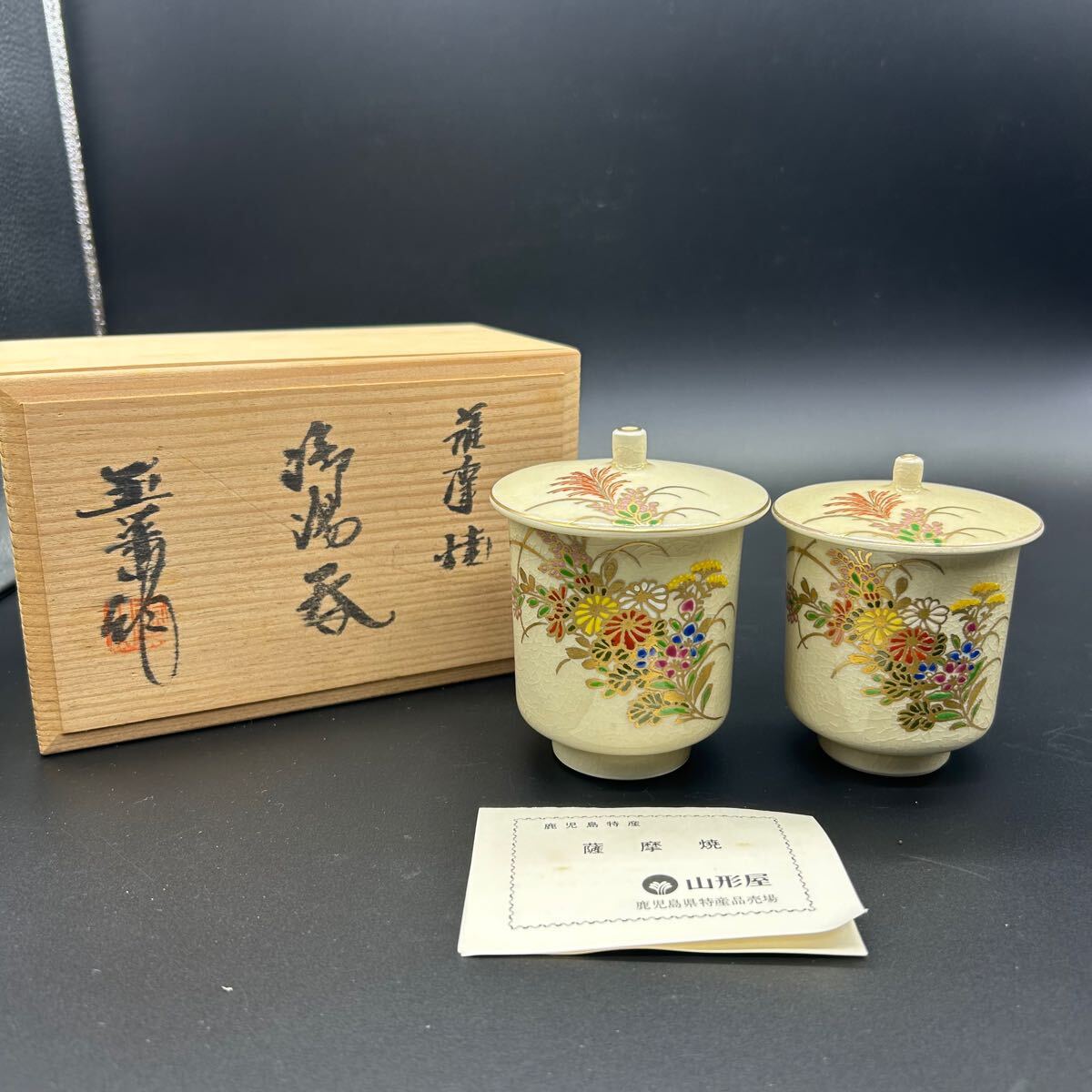 - 薩摩焼 薩摩玉栄山 蓋付 湯呑み 夫婦湯飲 さつま 湯呑 茶器 テ6