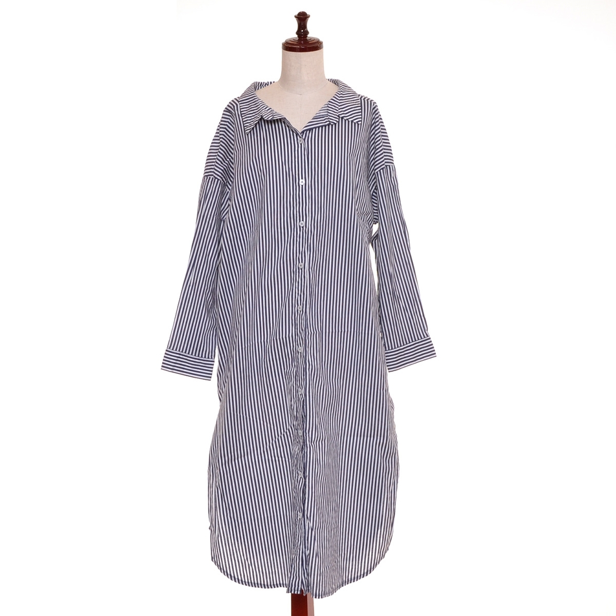 - □470575 GLOBAL WORK グローバルワーク アダストリア ■ワンピース ストライプロングシャツOP サイズL レディース ネイビー ホワイト