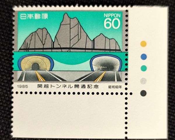 - [25012631]【関越トンネル開通記念】単片 CM・カラーマーク付「トンネルと断面図(谷川連峰)」60円 1985年発行 美品