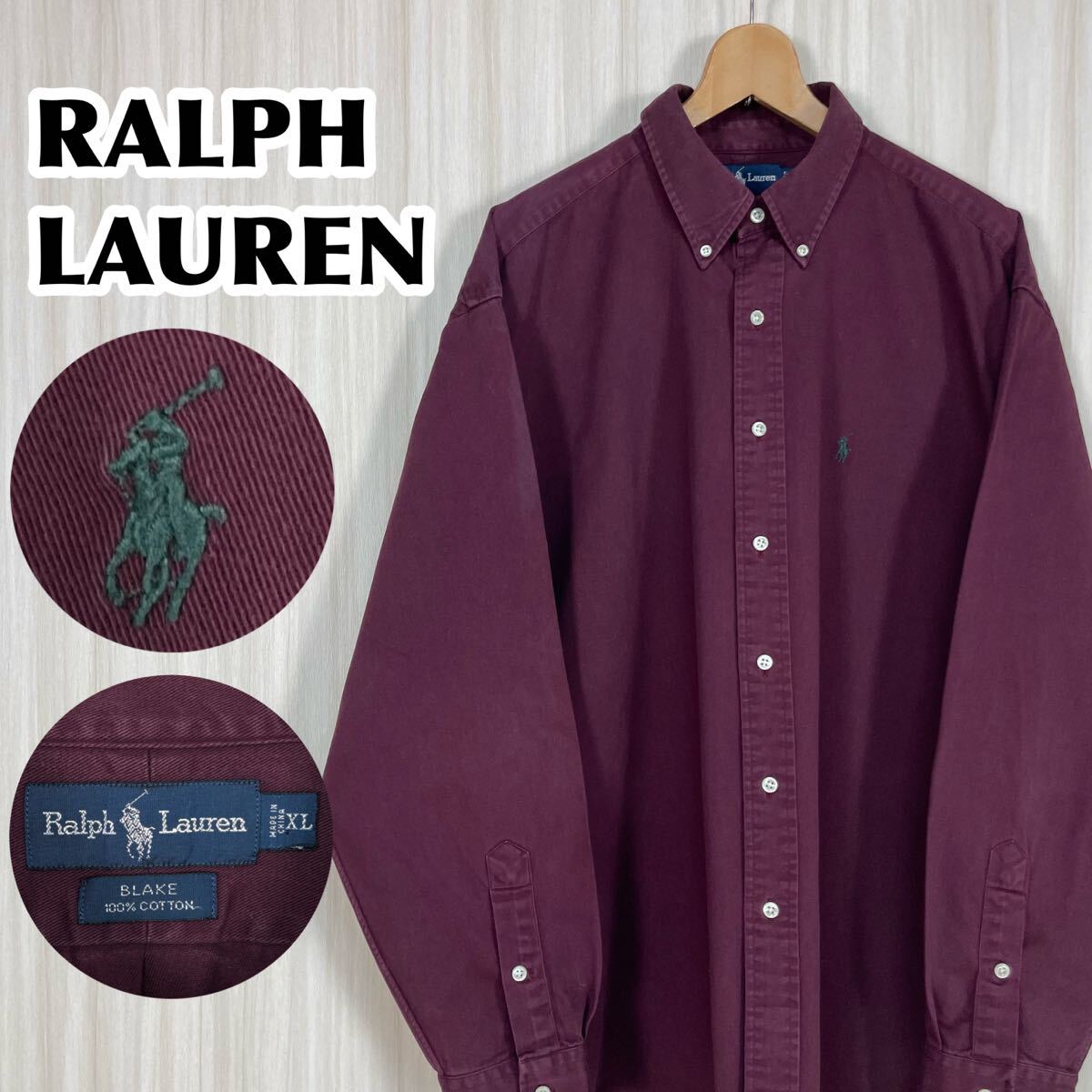 - ☆希少カラー☆ラルフローレン ワンポイント 刺繍ポニー ボタンダウン 長袖シャツ ラルフシャツ XL 小豆 あずき色 90s アメカジ 古着