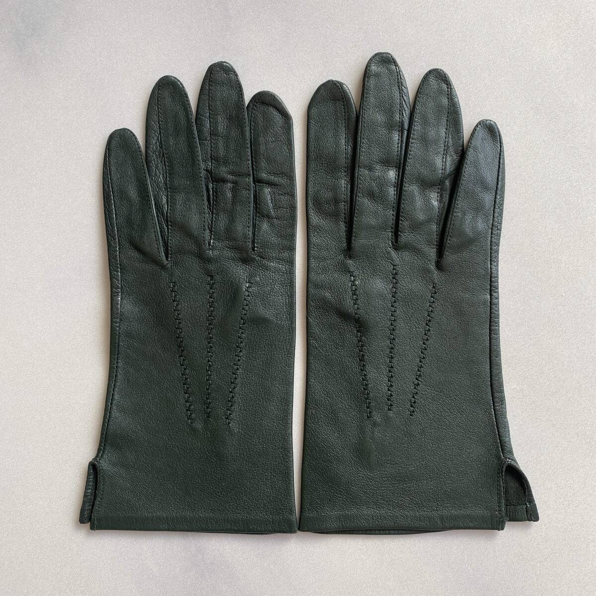 - 【美品】レディースサイズ レザーグローブ 革手袋 ダークグリーン 裏地無し