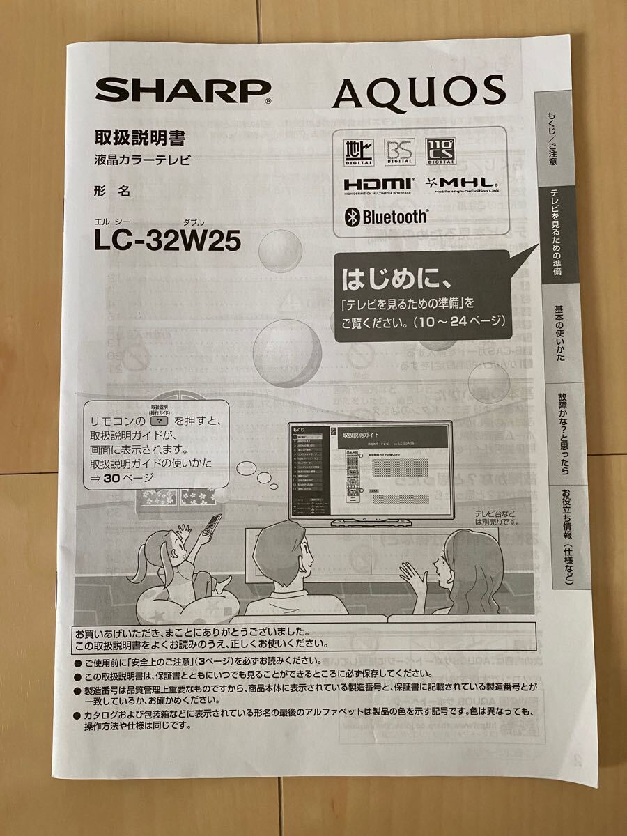 - SHARP シャープ AQUOS テレビ 取扱説明書 取説 LC32W25