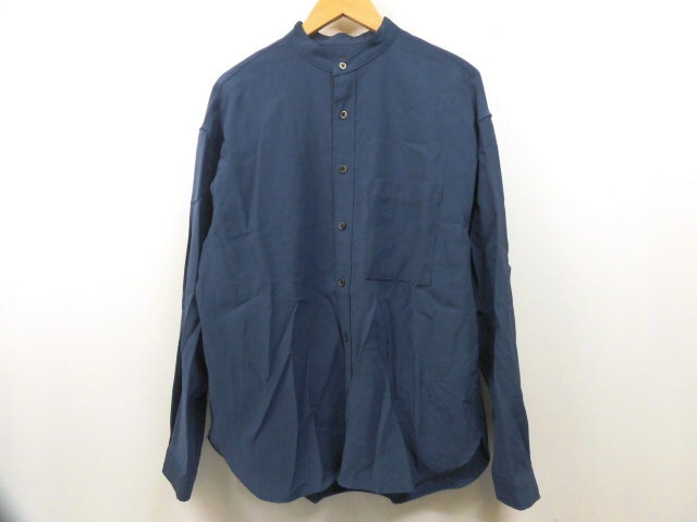 - RAGEBLUE レイジブルー ノーカラーシャツ 胸ポケット 長袖シャツ 無地 シンプル トップス ネイビー 紺 メンズ Mサイズ