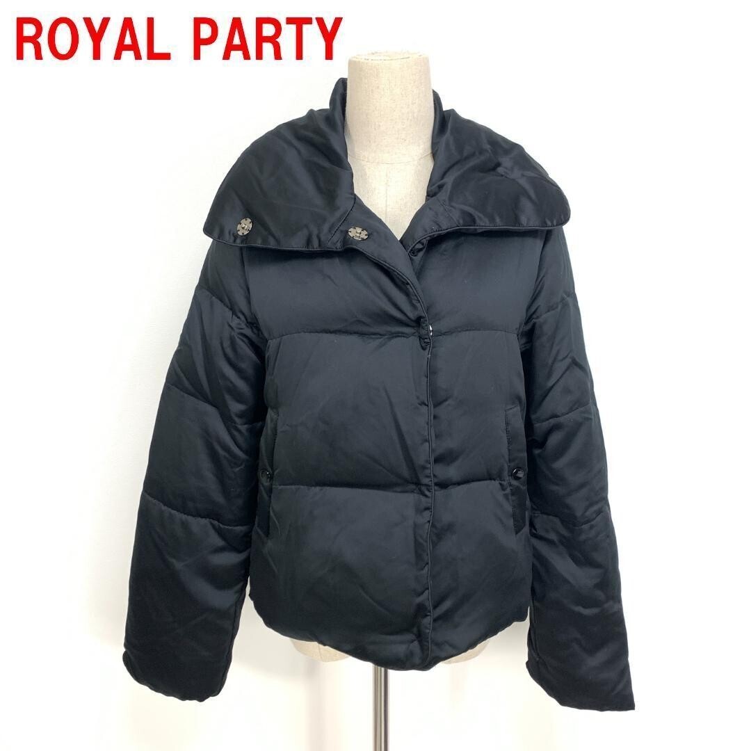 - A4968 ロイヤルパーティー ダウンジャケットROYAL PARTY ブラック ボリューム襟 コート フェザー 黒 38