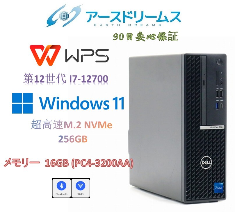 - D2150/DELL 5000/Core i7-12700/メモリ16GB/M.2 NVMe Pcle4.0 256GB+3.5HDD 1TB/DVD/Office WPS/DVD/Win11Pro/内藏無線LAN+Bluetooth