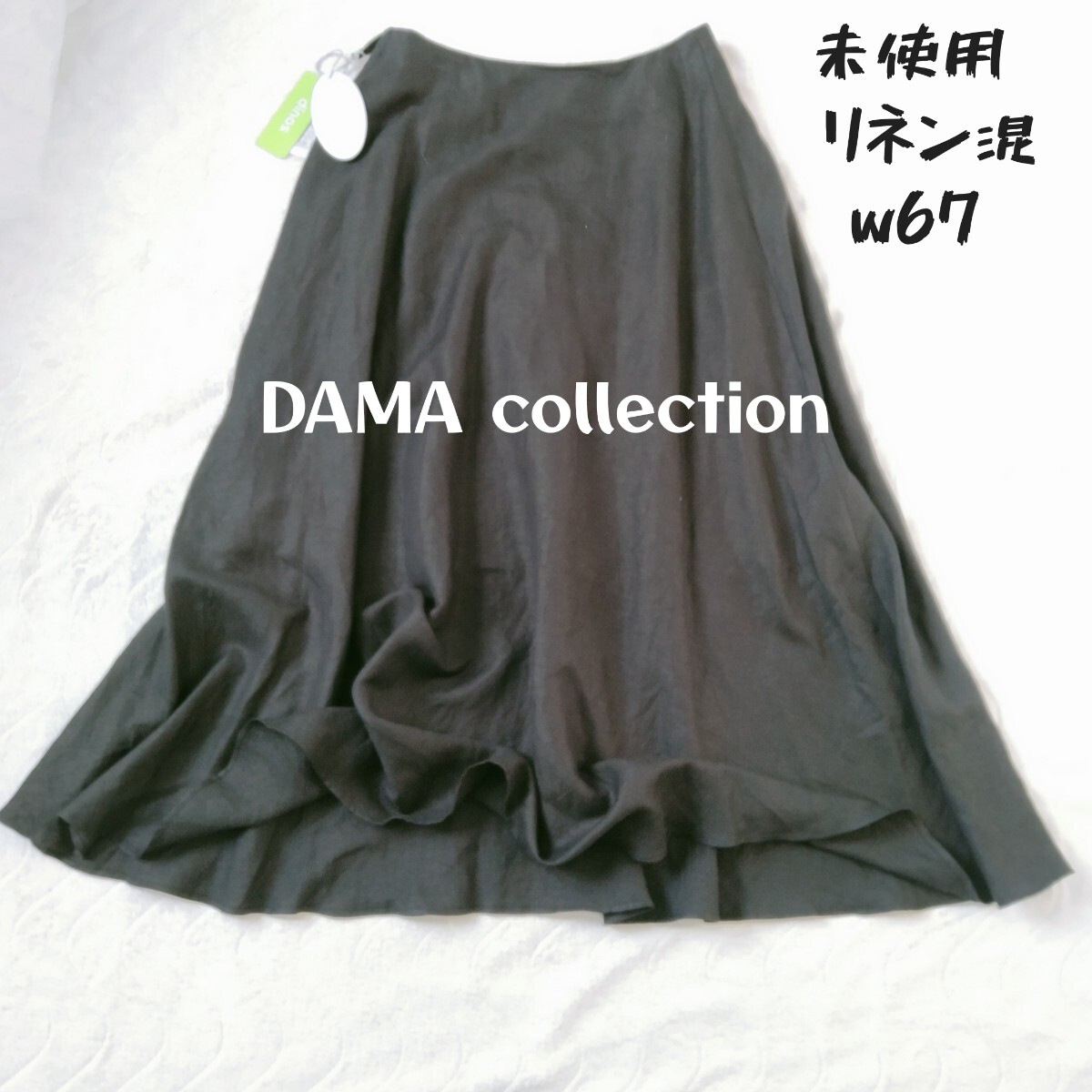 > 未使用*DAMA collection ダーマ・コレクション*ロングスカート*フレアー*黒*シンプル*リネン混*洗える*日本製*麻×レーヨン*L*ディノス