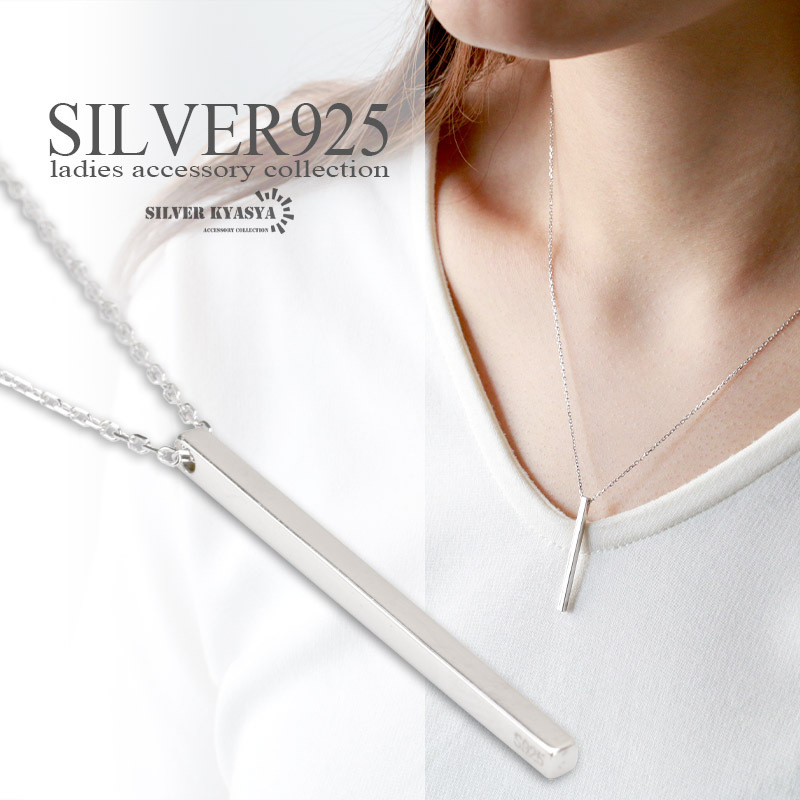 - シルバー925 スティックネックレスネックレス アレルギー対応 シルバー 細身 アジャスター付