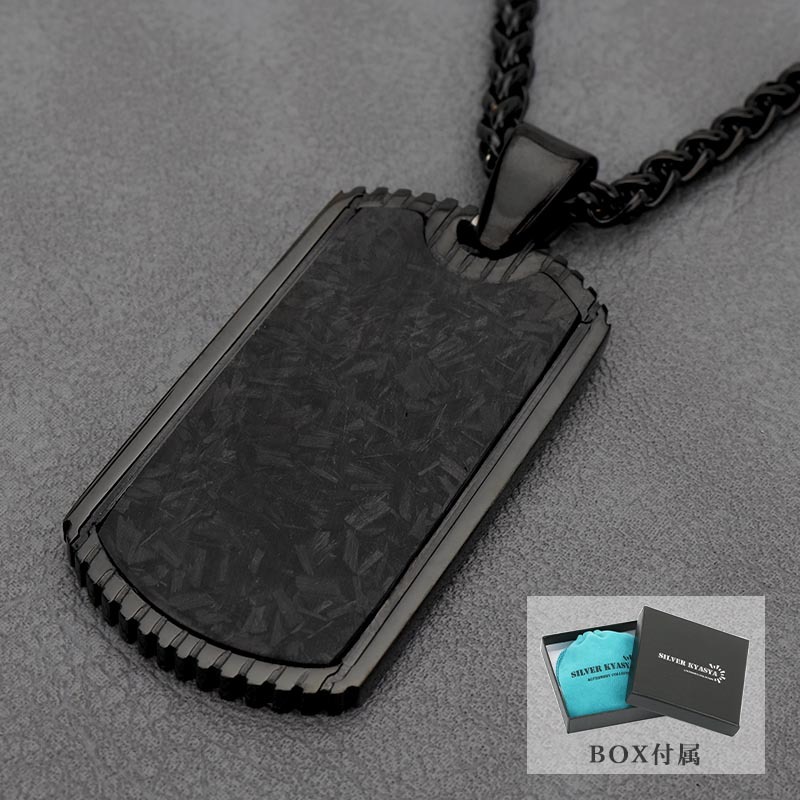- カーボン模様 高級感 ブラック ドッグタグネックレス メンズネックレス 黒 プレートネックレス スピガチェーン付き 専用BOX付属