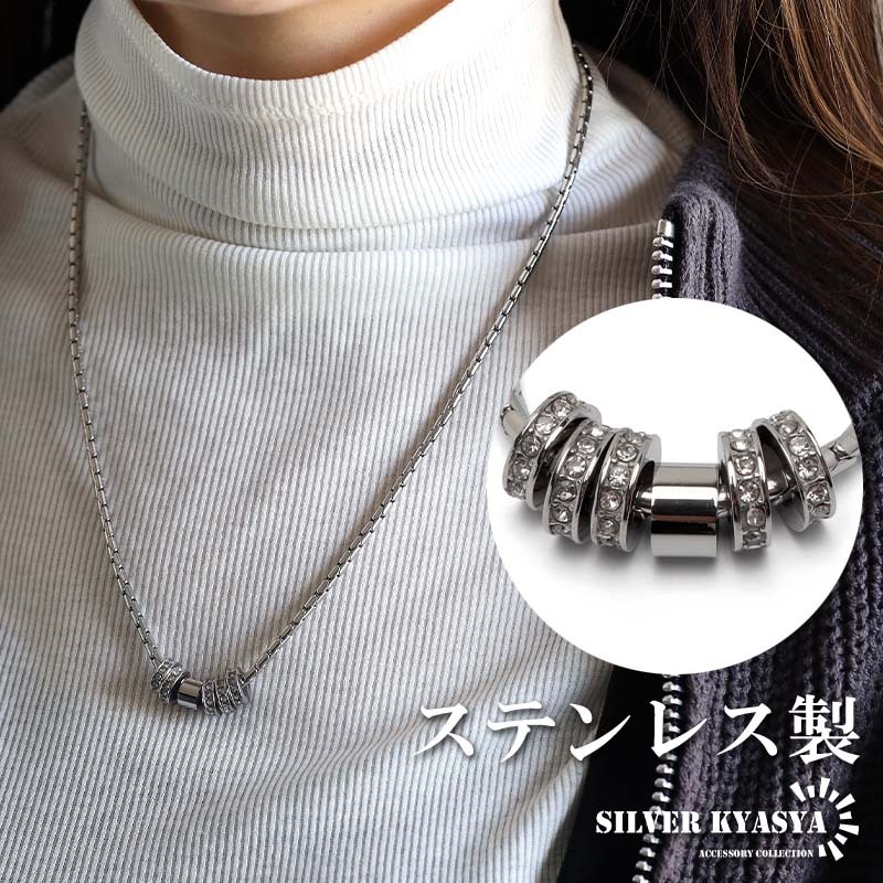 - ステンレス ジルコニアネックレス デザイン チェーン 他にはない ベネチアンチェーン シルバー cz 金アレ対応