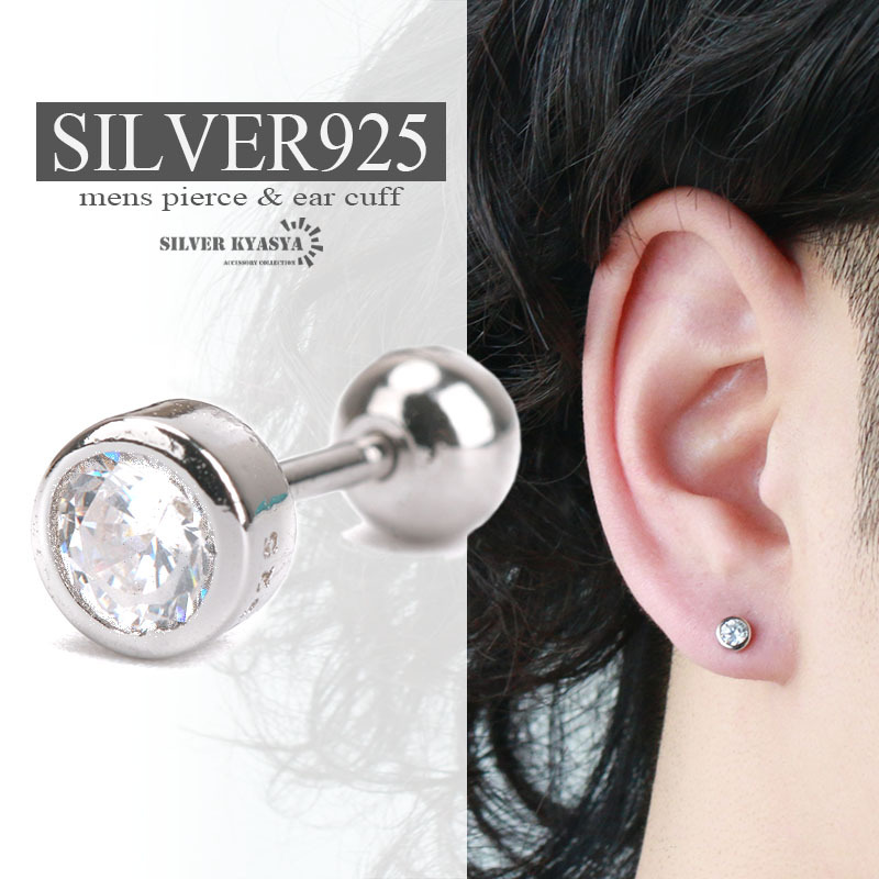 - シルバー925 スタッドピアス CZ ゴージャス キラキラ 片耳用 アレルギー対応 18G 刻印