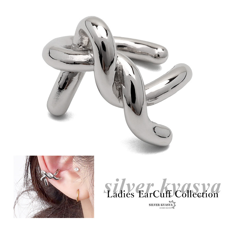 - イヤーカフ 金属アレルギー シルバー925 変形 ワイヤー風 ひねり ノット 結び目 シルバー イヤークリップ 片耳用