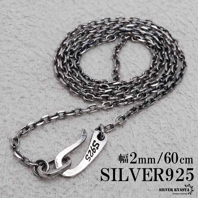 > シルバー925 燻し仕上げ あずきチェーン ネックレス 幅2mm 60cm 4面カット 黒 細身 メンズ 男性 金属アレルギー対応