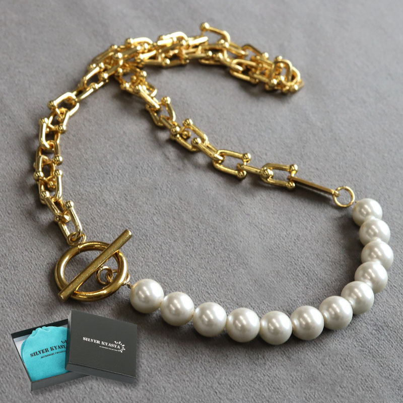 - ネックレス(シルバーキャシャ)オリジナル パールネックレス 18K マンテル ハンドメイド ストリート 金属 専用BOX付属