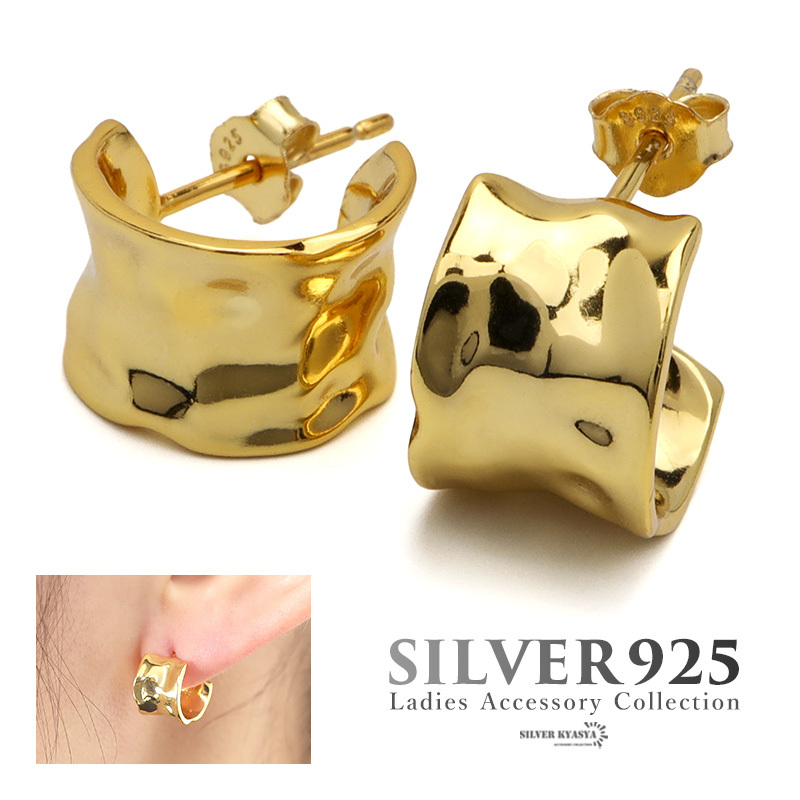 - ピアス フープピアス ゴールドピアス シルバー925 18KGP 18金 レディース 槌目 ゴールド 両耳用 2点セット