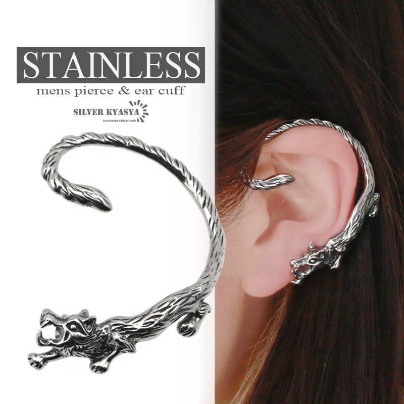 > ウルフ ピアス ステンレス スタッドピアス 狼 モチーフピアス ステンレスピアス 金属アレルギー ラージピアス 片耳用1点 18G