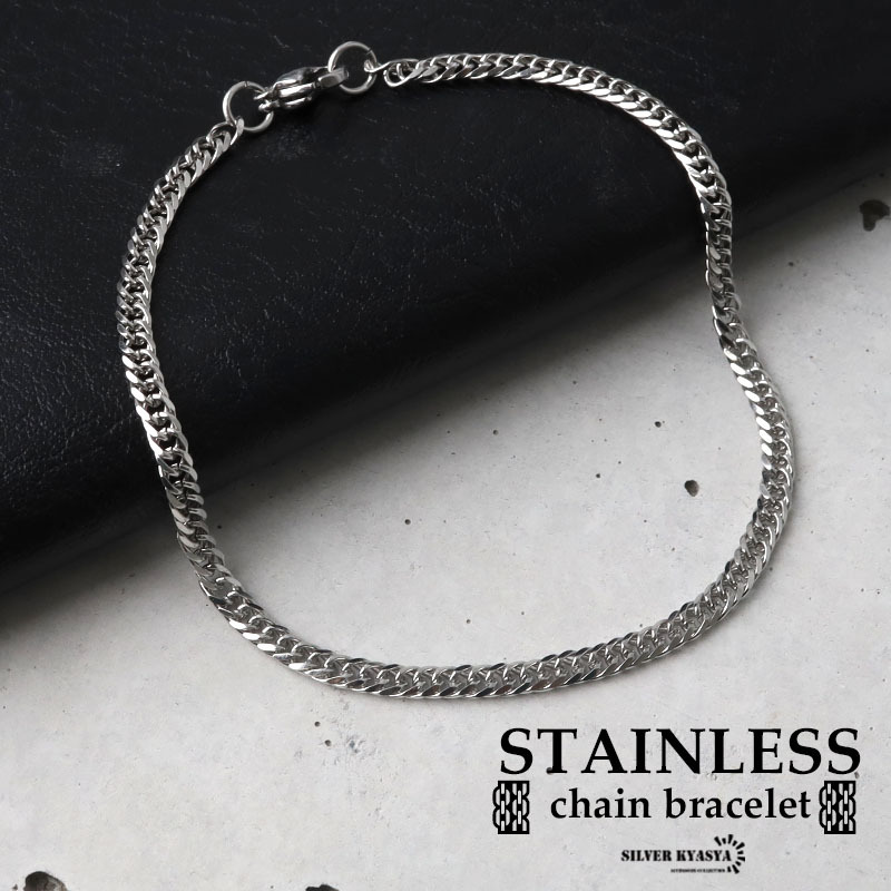 - 幅3mm ステンレス ダブル喜平チェーンブレスレット 6面カット シルバー 金属アレルギー