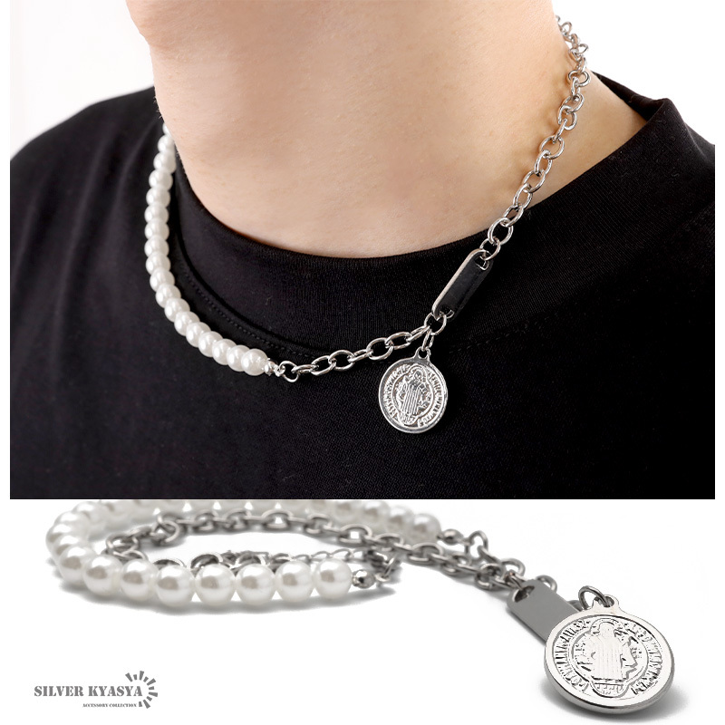 - ネックレス パールネックレス コイン ストリート 銀色 金属