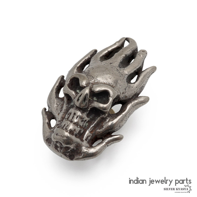 - ファイヤードクロ スカル 炎 コンチョ 飾りボタン ねじ式 財布 ウォレット スマホケース レザー ハンドメイド カスタム パーツ