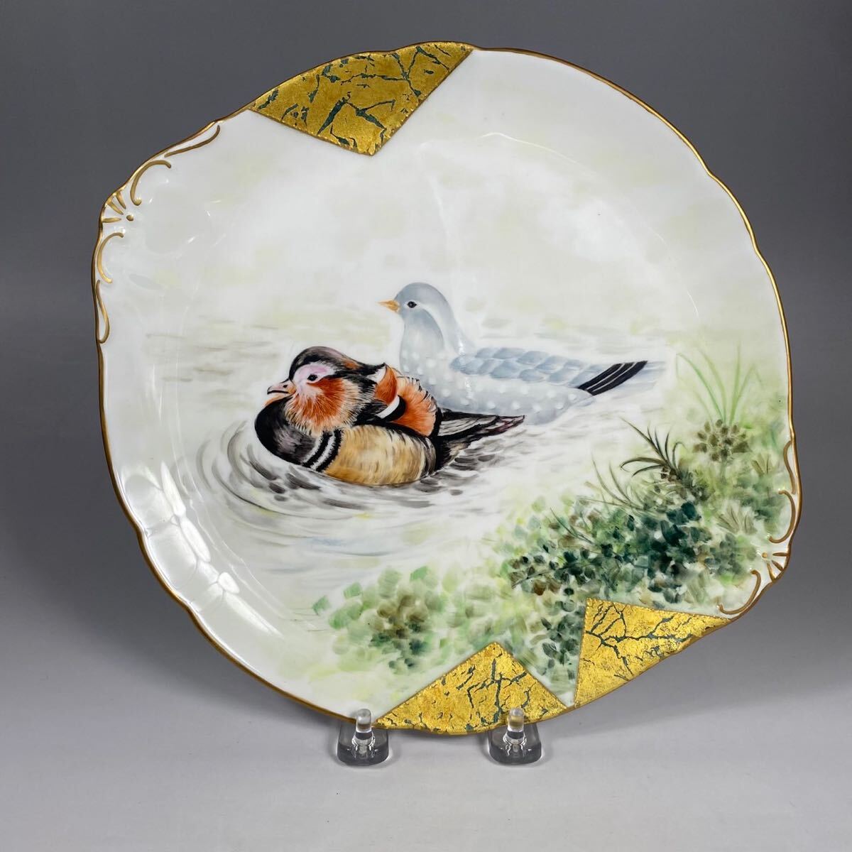 > 金彩 飾り皿 絵皿 鴛鴦 飾り皿 皿ハンドペイント 美術品 25cm 金彩 大皿 ペインター作品 オールドニッポン調 美術品 野鳥