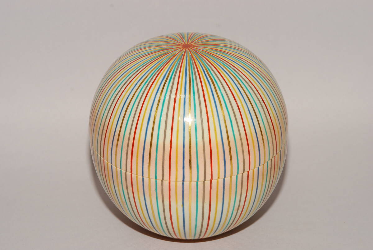 - 京焼 平安 北峯 製 色彩手毬 栗盒 共箱 共布 蓋物 菓子器 色絵金彩 茶道具